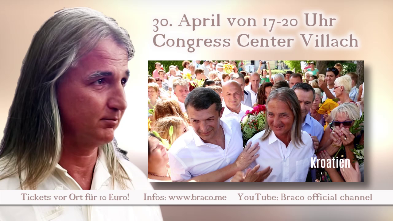 Am Dienstag den 30. April 2019 von 17-20 Uhr im Congress Center Villach. Beginn der Veranstaltung jeweils zur vollen Stunde….17, 18 und 19 Uhr. Tickets für 10 Euro sind vor Ort erhältlich. Weitere Infos unter www.braco.me Eine neue Erfahrung von Frieden und innerer Schönheit.