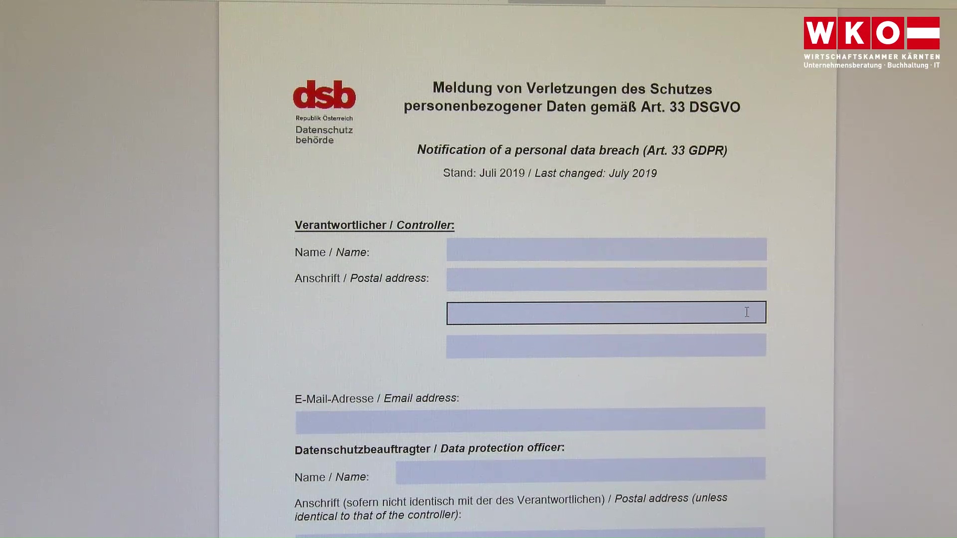 Meldung an die Datenschutzbehörde