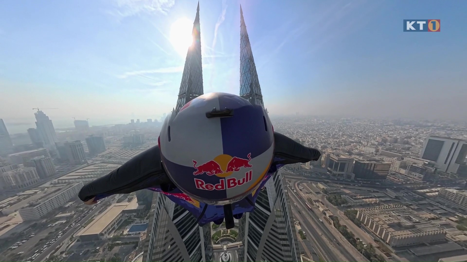 Die Extremsportler fliegen mit enormer Geschwindigkeit im Wingsuit synchron zwischen den Türmen des Bahrain World Trade Center hindurch. Wingsuit-Fliegen ist eine Form des Fallschirmspringens, bei der Athleten einen speziellen Anzug mit Stoffflächen zwischen Armen und Beinen tragen. Dieser „Flügelanzug“ erzeugt Auftrieb und ermöglicht es, nach dem Absprung aus großer Höhe nicht nur zu fallen, sondern mit hoher Geschwindigkeit horizontal durch die Luft zu gleiten.