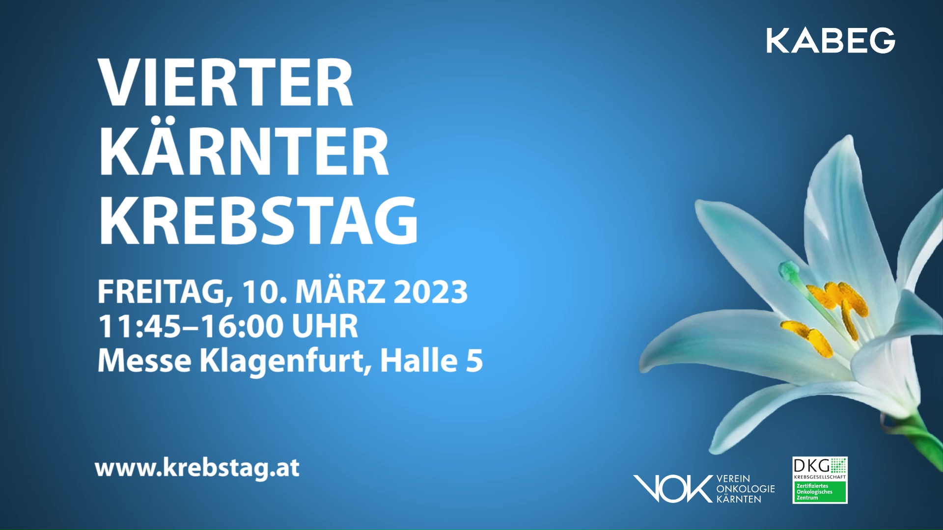 Am 10. März 2023 findet von 11:45-16:00 Uhr der vierte Kärntner Krebstag in der Messe Klagenfurt (Halle 5) statt.